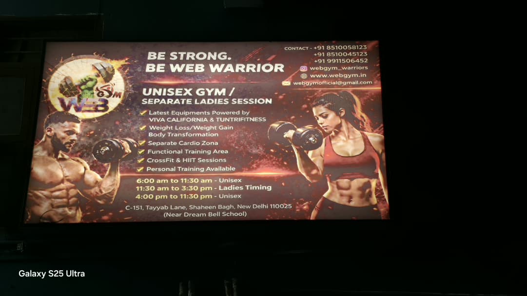 Centrally located in Shaheen Bagh with ample parking and a massive, ventilated workout floor.